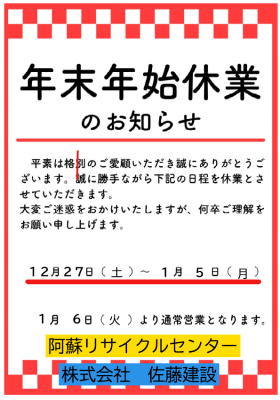 【2025‐2026年末年始休業のお知らせ】